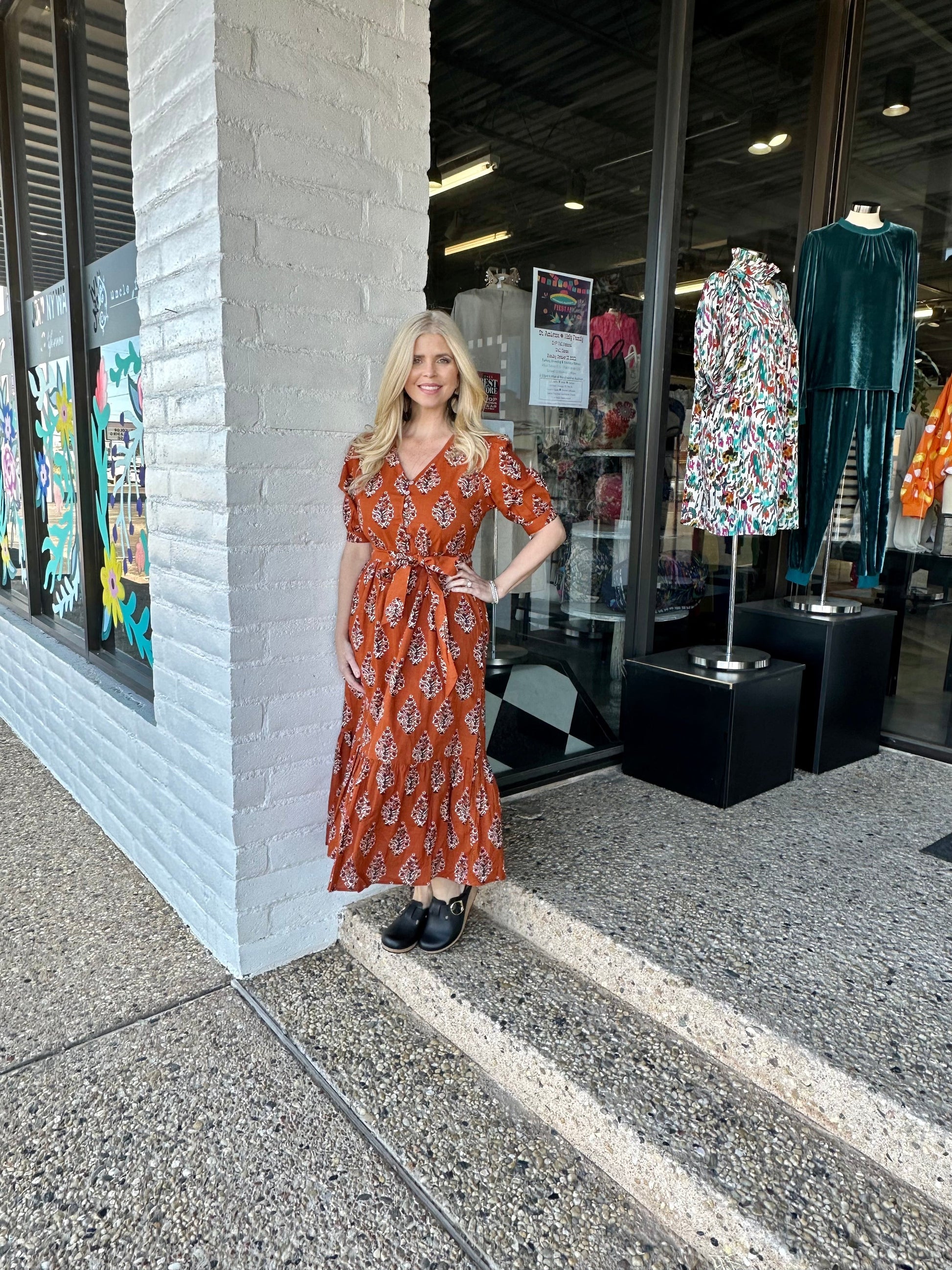 Make a statement in this Ivy Jane Block Print Midi Dress in a bold rust hue! The classy, yet modern print ensures you'll be the talk of the town. Throw it on and never be late for happy hour thanks to its easy, breezy, and comfy fit! (Psst... you're gonna want to add this one to your wardrobe stat.)
