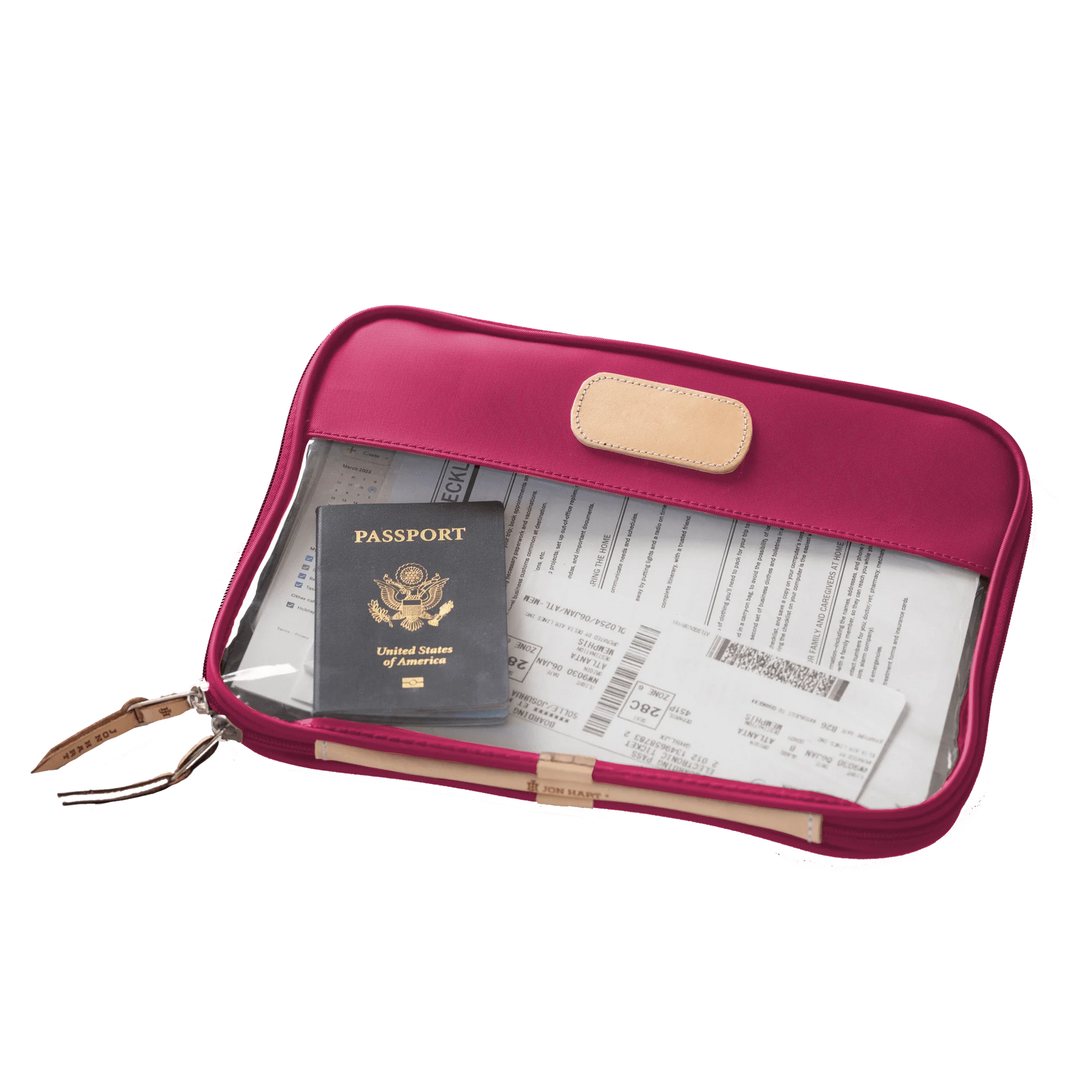 Leave your worries behind & your stress in the folio. The Clear Foilo keeps you organized at work, while traveling and even just around the house! It keeps full sized papers, notebooks, important documents and so much more protected and organized. Also comes in Colored Leather & the JH Cotton Canvas.