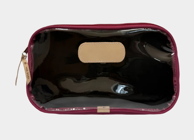 The Compass is a roomy zip-top bag designed to carry it all... from toiletries to Mahjong tiles to snacks on the go. Its unique A-line gusset gives it a sleek look at the top while expanding at the base for extra space where you need it most. A clear front makes contents easy to find, while the coated canvas back adds a classic Jon Hart touch. PLEASE SEARCH JON HART MONOGRAM IN THE SEARCH BAR IF YOU WANT A MONO ON YOUR BAG!