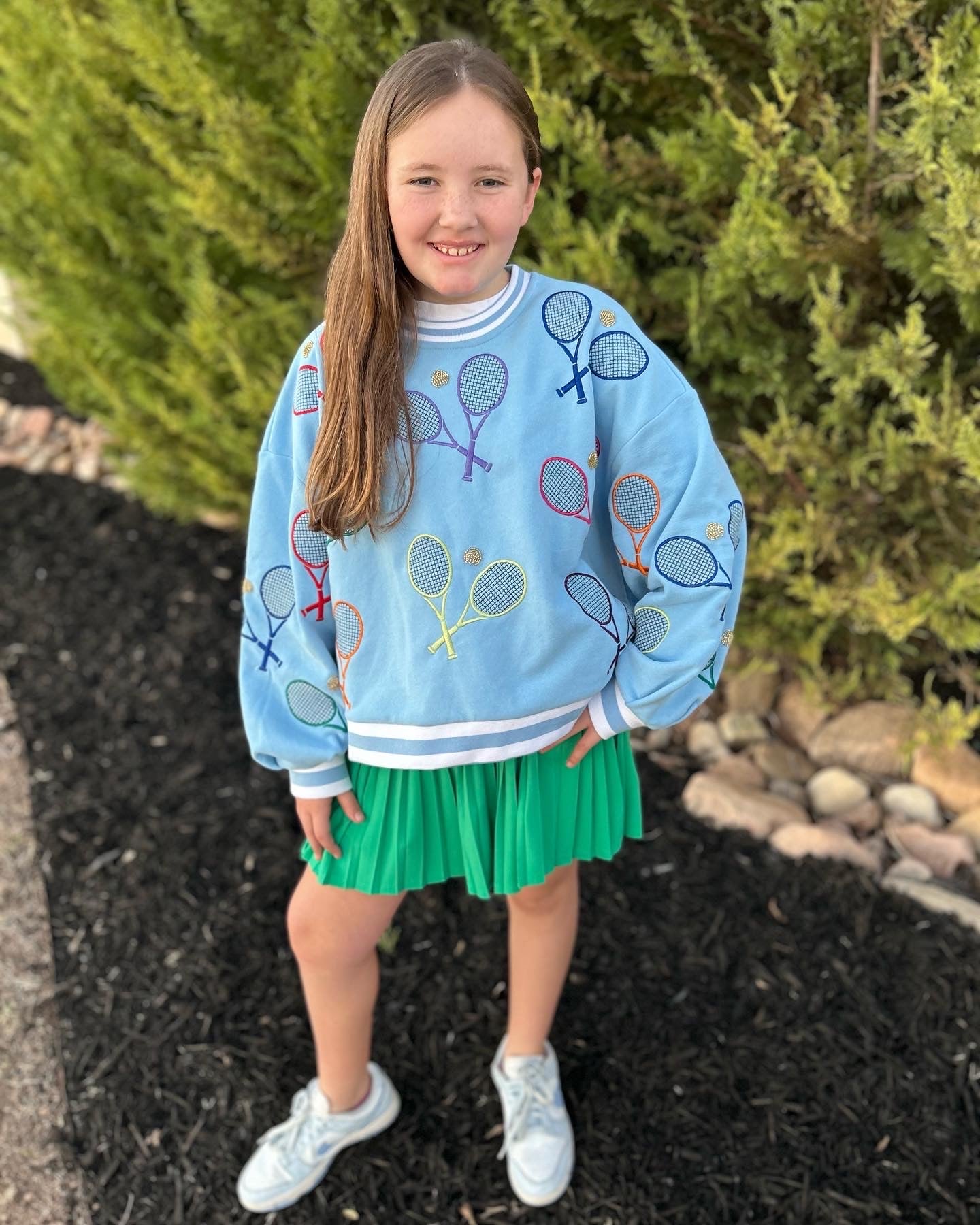 "Rule the court with the Queen of Sparkles - the light blue scattered Tennis Tee. Stay cool and stylish while playing your game in this light blue Tennis Sweatshirt. Game on!"
